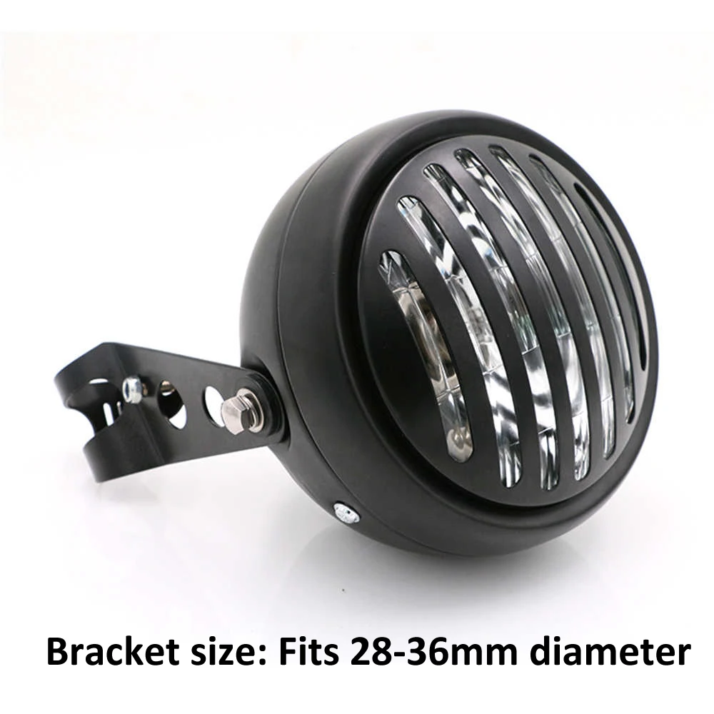 5.75'' Motorcycle Headlight Moto Light with Brackets for Honda CG125 GN125 CB CL Sportster Chopper Vintage Motorbike HeadlampFeatureClassical lookHigh Quality with Metal HousingLow consumption & EfficientDurable & Long lastingEasy installationDescriptionItem name: Retro Motorcycle HeadlampMaterial: Aluminum AlloyColor: As picturesPower consumption: 35WVoltage: 12VBracket Size: 28mm-36mmLo/Hi beam: YesCompatibility: Fits for most of motorcycles, plz check the measurements before purchasePackage includes1 piece of Motorcycle Headlight1 piece of Motorcycle Headlight with bracket (optional)NoticePlease allow 1-3mm error due to manual measurement, thanks.No instructions included. Professional installation is highly recommended.Due to changes in the brightness of the light, the color of the product may be a bit different from the actual color. Please refer to the actual product, thanks.About shippingItems will be shipped within 1-3 business days when we received payment.Import duties, taxes are not included in the item price or shipping charges. These charges are buyer's responsibilit