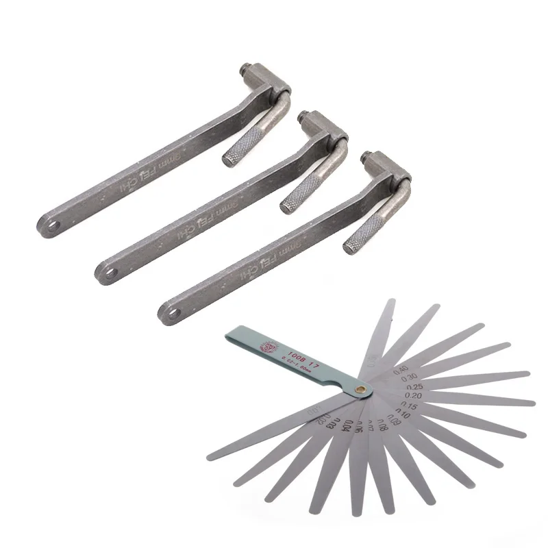 6pcs/lot Universal Motorcycle Engine Valve adjustment tool valve screw wrench 3/3.5/4mm 8mm 9mm 10mm Feeler gauge 0.02 to 1mmPackage Including:1*8mm Valve Wrench1*9mm Valve Wrench1*10mm Valve Wrench1* Feeler Gauge ( 0.02-1)