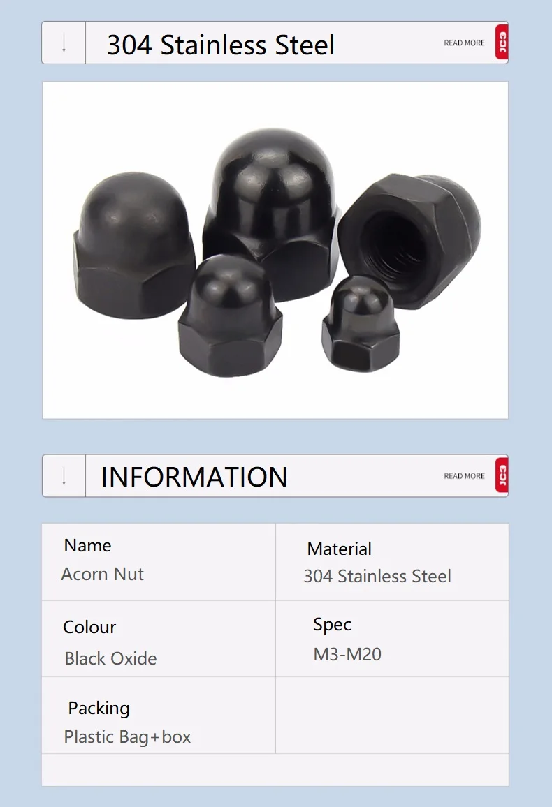 Black 304 Stainless Steel Acorn Cap Nuts M3 M4 M5 M6 M8 M10 M12 M14 M16 M18 M20