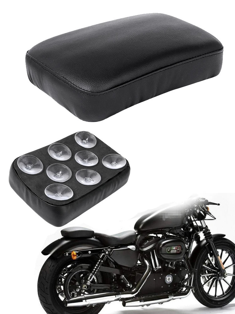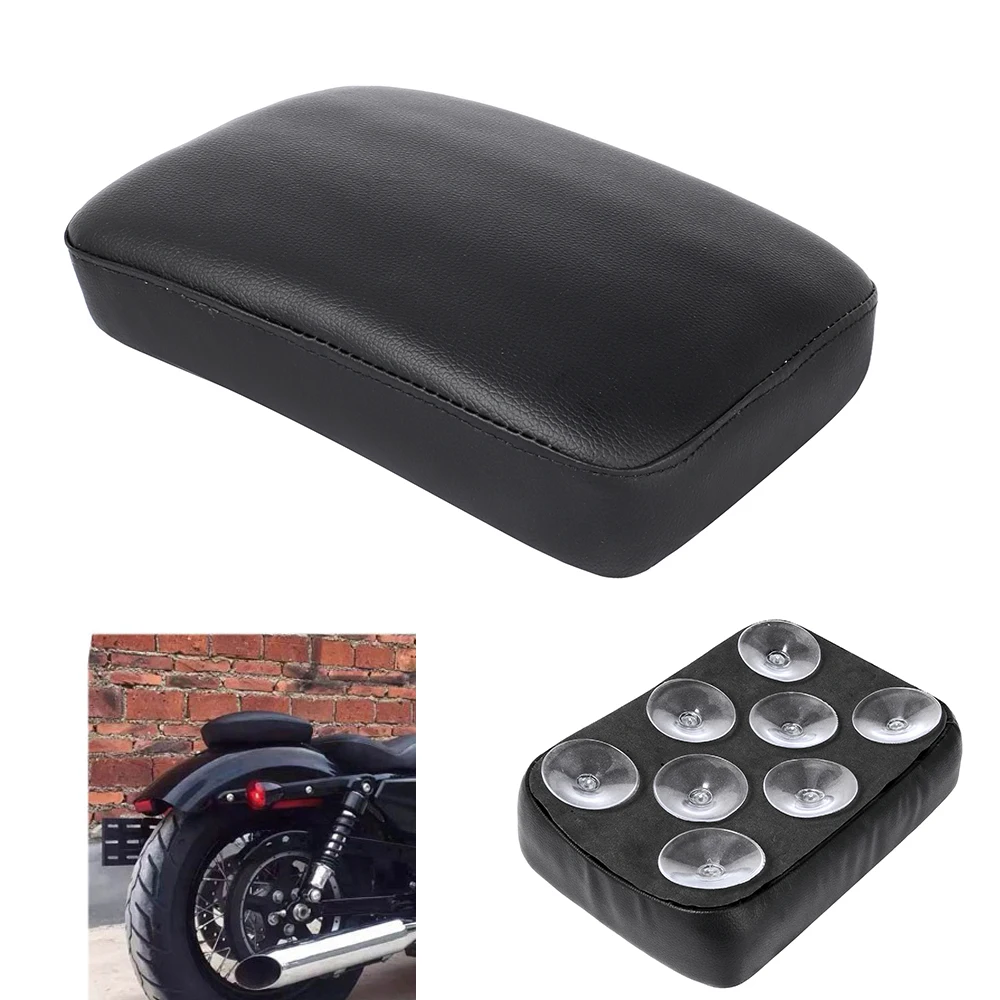Black Rear Passenger Cushion 8 Suction Cups Pillion Pad Seat For Harley Dyna Sportster Softail Touring XL 883 1200