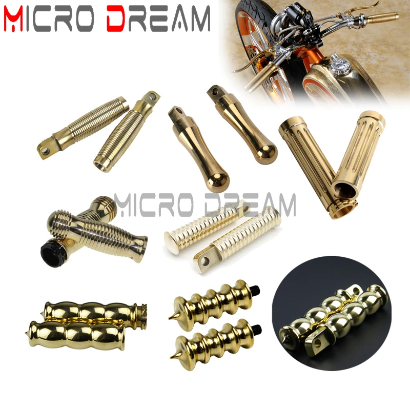 These are CNC milled from solid brass, some minor machining marks may be present. Barrel shaped grooves may show some banding on the transitions. These have a great feel and will reduce the tendency for your hands to slip off on hard acceleration or deceleration.