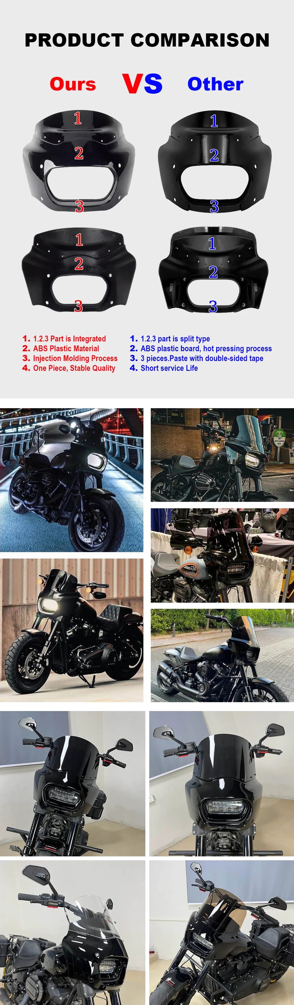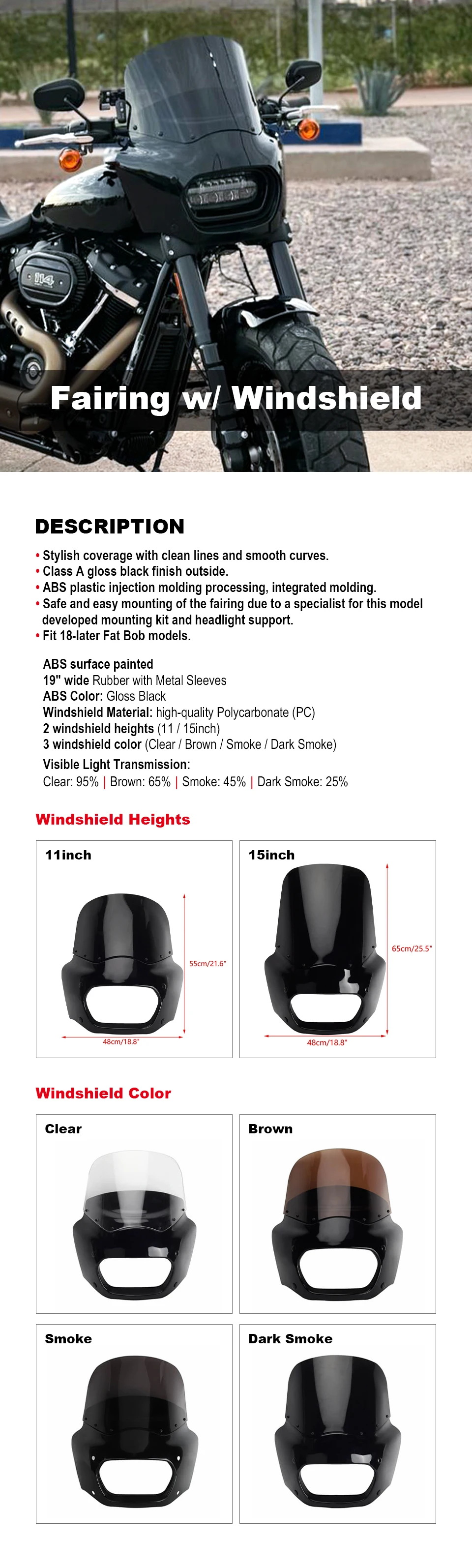 Club Style Front Headlight Fairing 15" 11" Windshield for HD Softail M8 Fat Bob