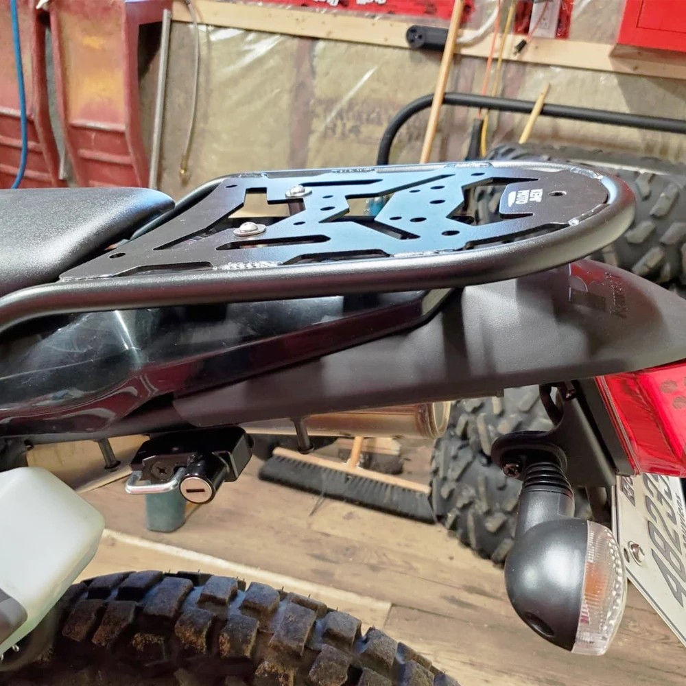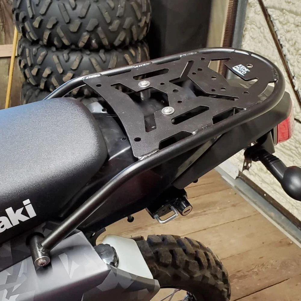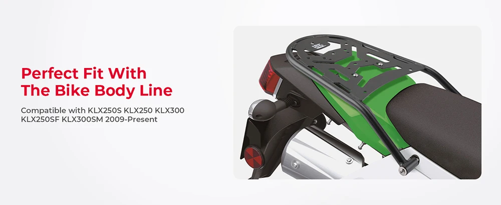 The shape of the KLX300 storage rack carrier fits the rear line of the bike.