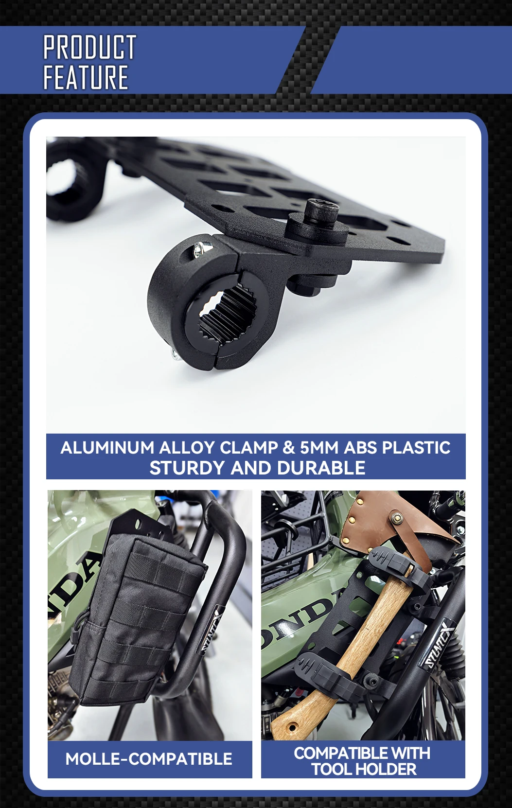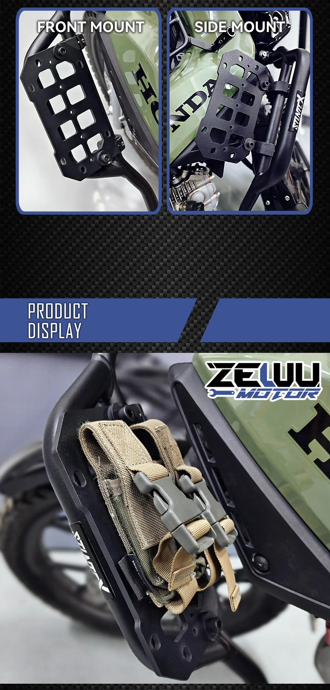 Motorcycle Bumper Molle Panel For Trunk Storage Aluminum Alloy Waterproof Tactic