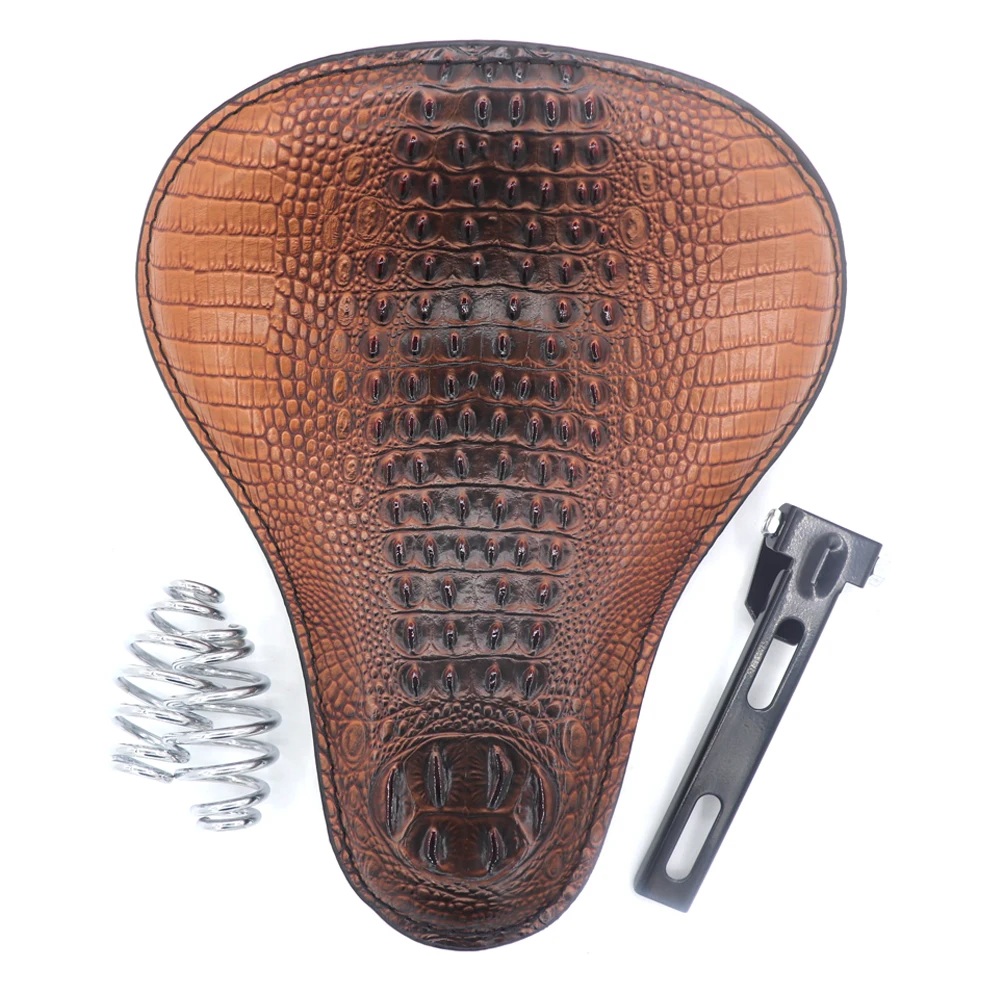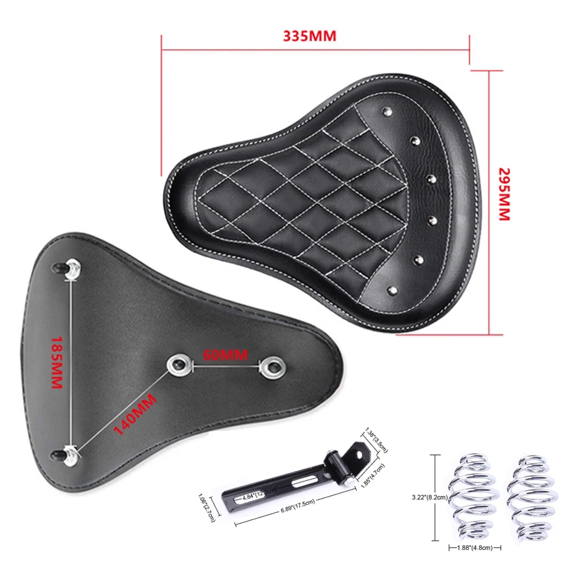 -Made of high quality PU Leather and neoprene foam,this type of driver seat will be soft ,delicate,elastic and provide you a comfortable feeling and you can seat for longer time without fatigue while driving.-The high imitation of solo driver seat design creates an unique look for your motorcycle.-Easy installation with heavy duty mounting bracket and shock-absorbing spring.Color: Black