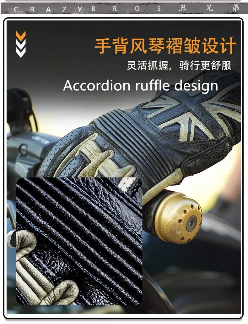 SPECIFICATIONSBrand Name: uglyBROSOrigin: Mainland ChinaCN: GuangdongMaterial: leatherItem Type: GLOVESFeature: Full FingerGender: MenChoice: yesRetro Genuine Leather Motorcycle Gloves Unisex Outdoor Riding Protective Motocro$105.17PriceColorSelectSizeSelectQuantity*Add to Cart