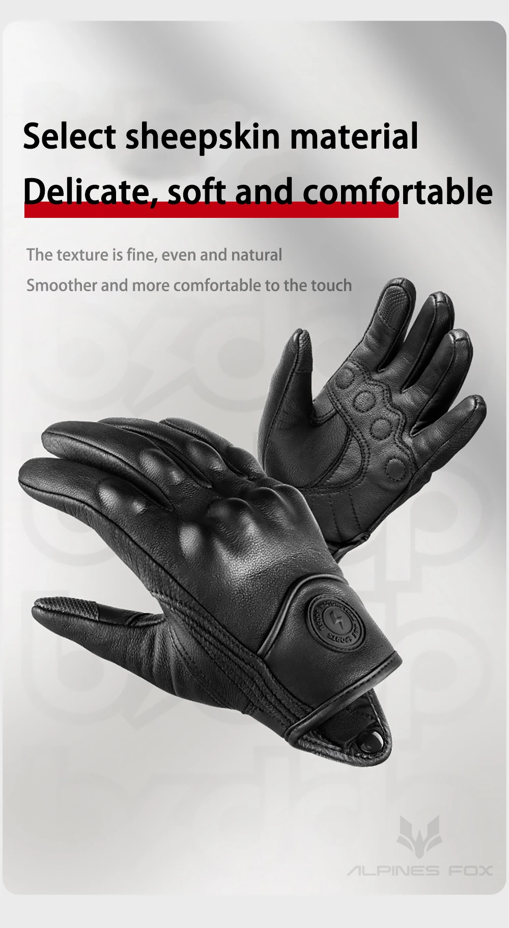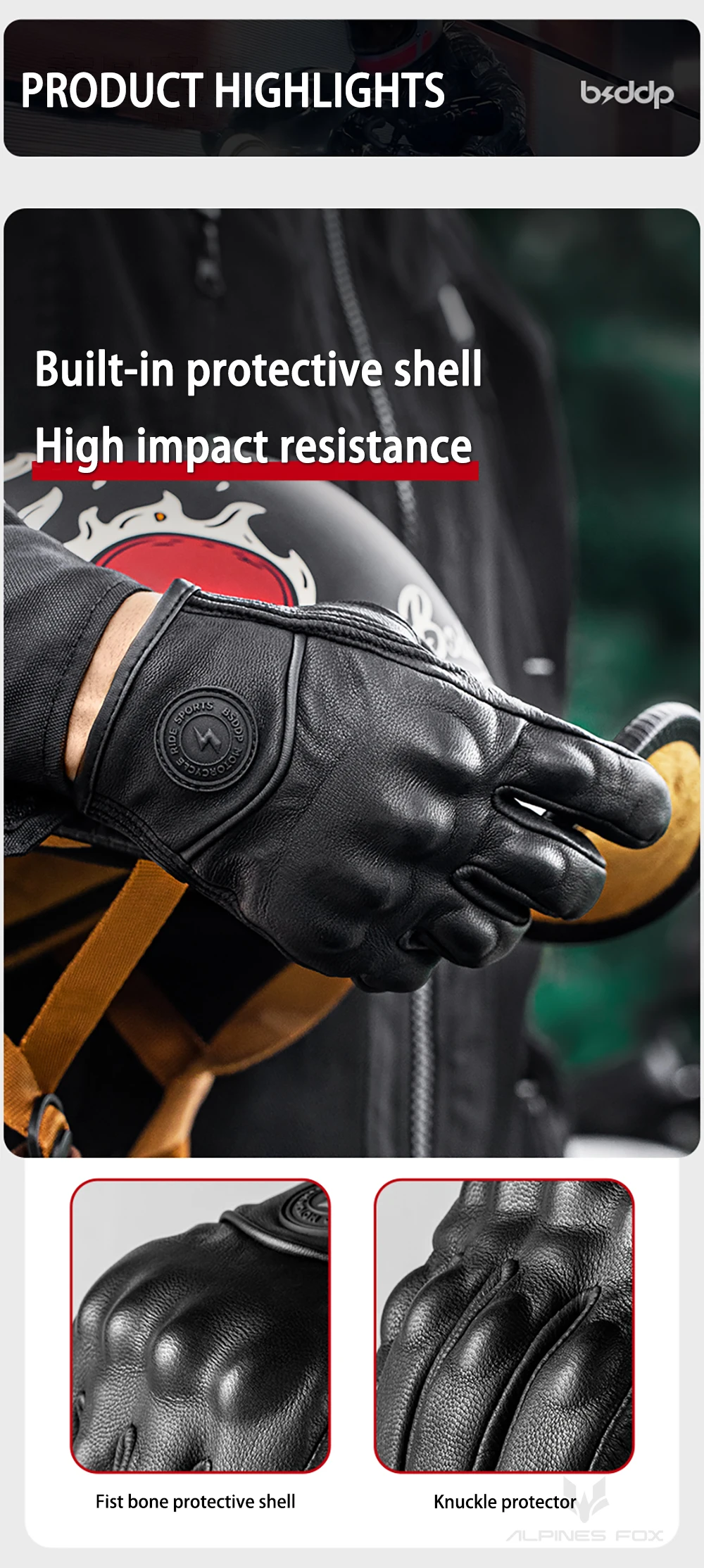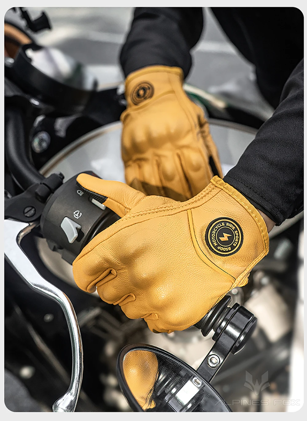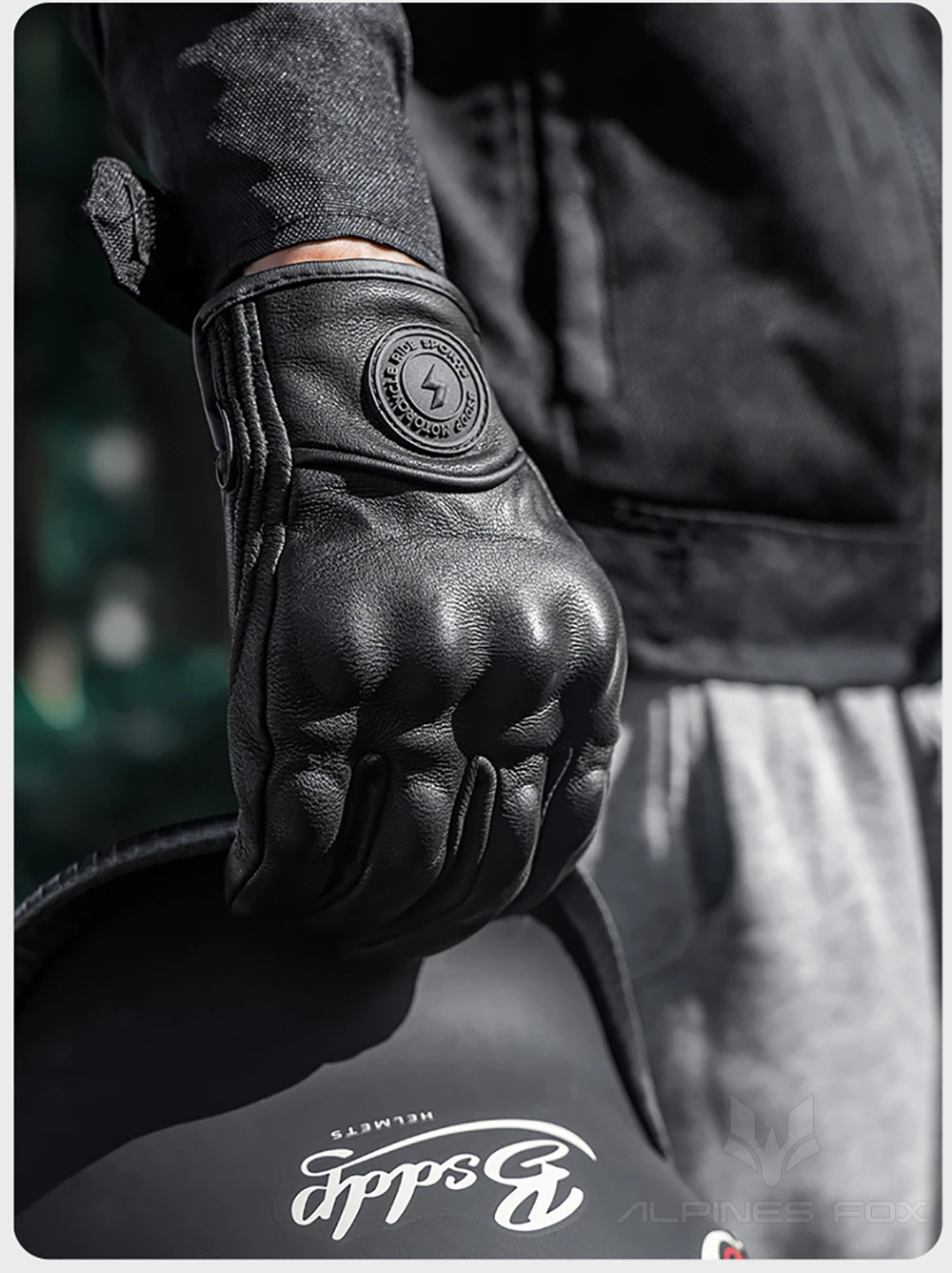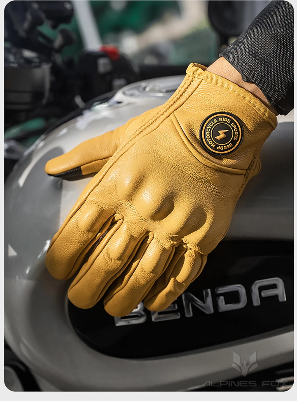 Retro Leather Motorcycle Gloves Vintage Men Women Moto Cycling Winter Gloves Tou