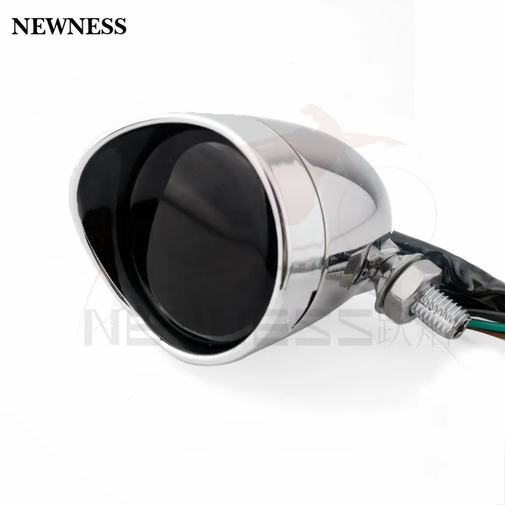 Retro Motorcycle Brake Stop Light Chrome/Black Motorbike Rear Tail Lamp Indicato