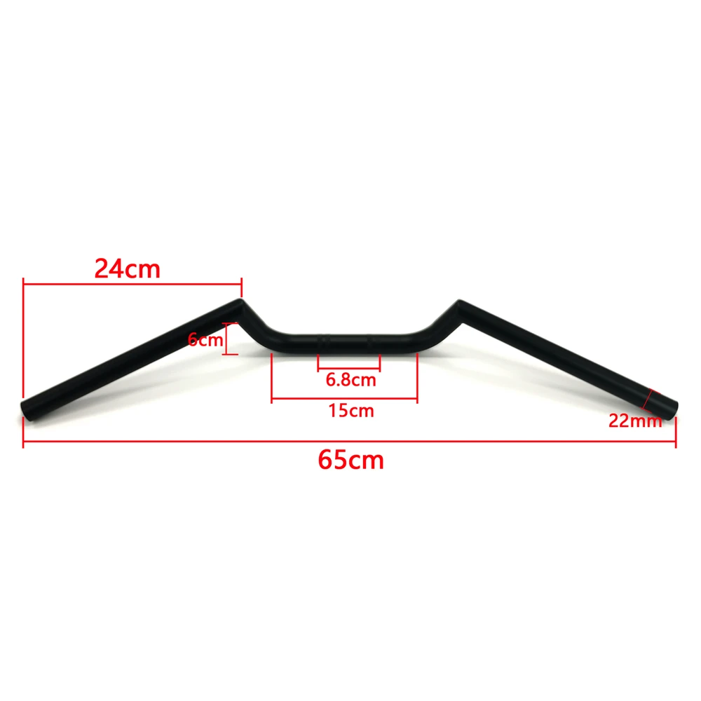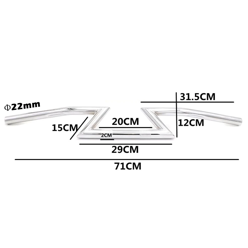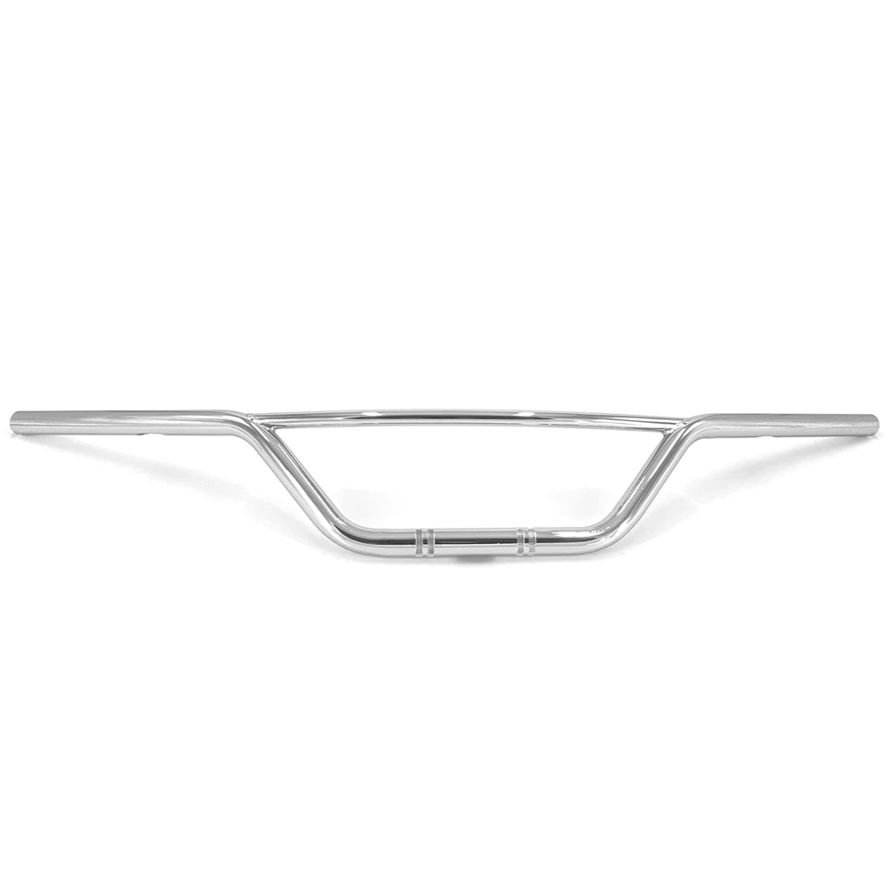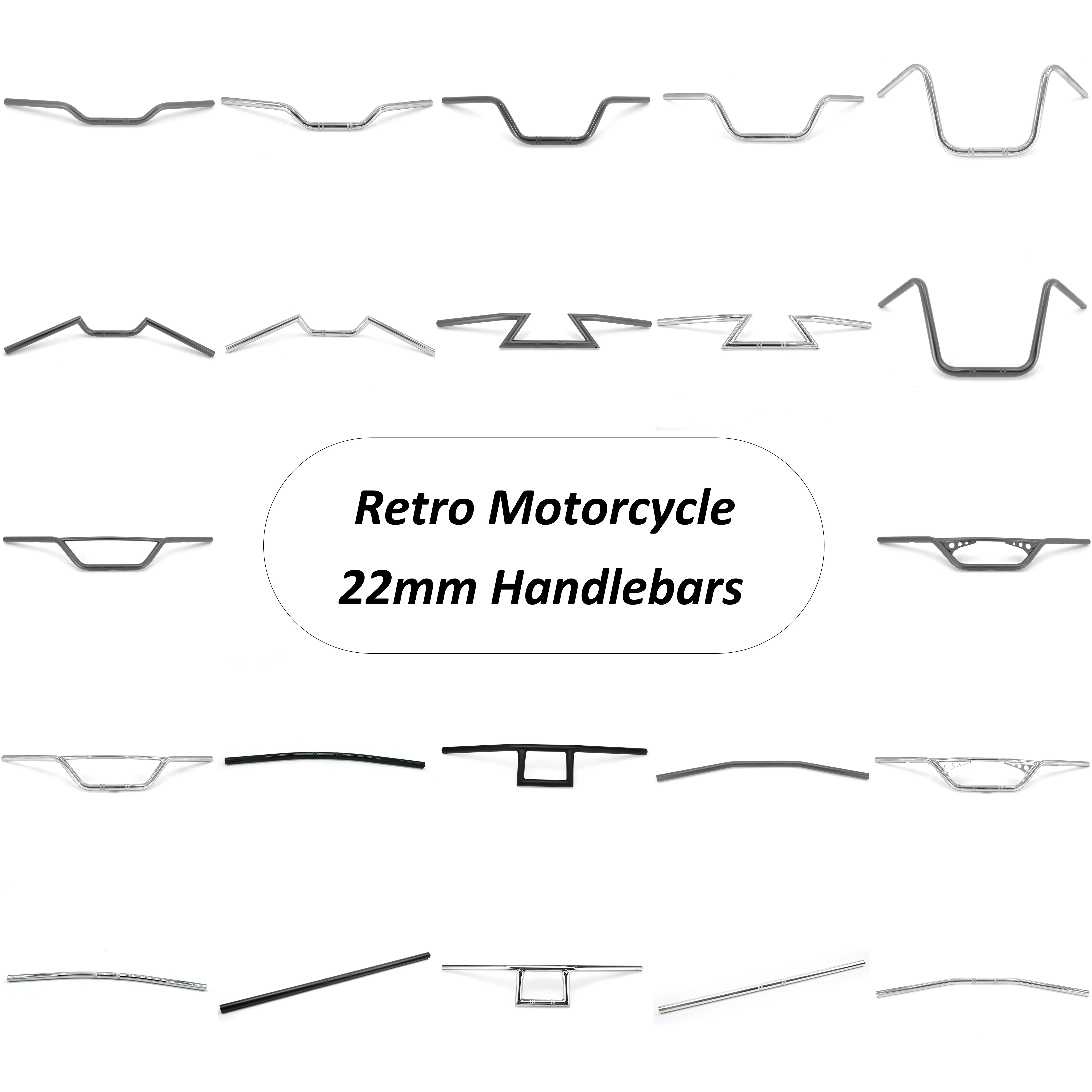 FeatureModified handlebar enhances rider's comfortability as well as the look of the bike.Simple design, fashionable and durable.Direct installation, no modification required.DescriptionItem name: Retro Motorcycle 22mm HandlebarsMaterial: MetalColor: Black/ChromeDiameter: 22mmCompatibility: Please check the measurements before purchasePackage includes1 piece of Motorcycle HandlebarNoticePlease allow 1-3mm error due to manual measurement, thanks.No instructions included. Professional installation is highly recommended.Due to changes in the brightness of the light, the color of the product may be a bit different from the actual color. Please refer to the actual product, thanks.About shippingItems will be shipped within 1-3 business days when we received payment.Support & FeedbackPositive Feedback is very important for us. Please don't forget to give us all ★★★★★ ratings if you are satisfied with our product and service :)
