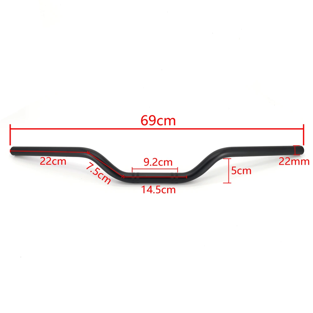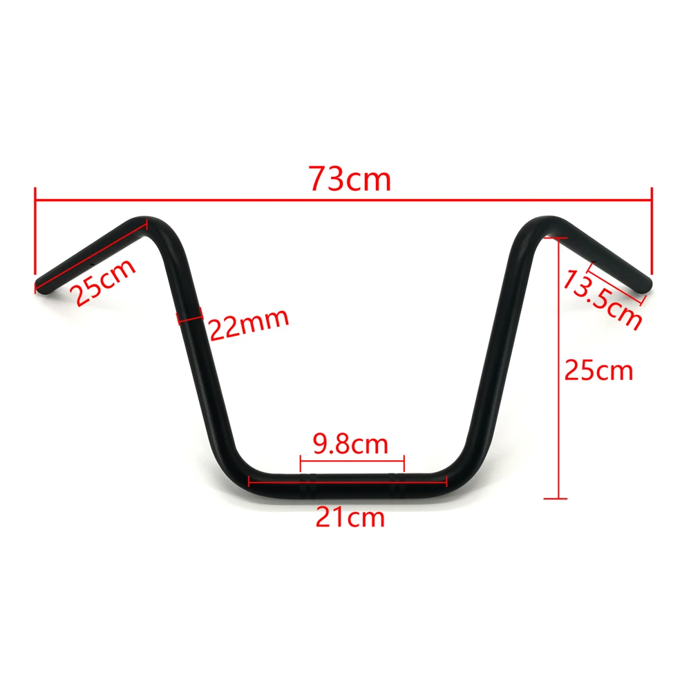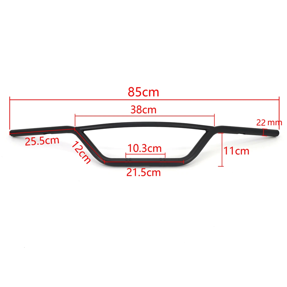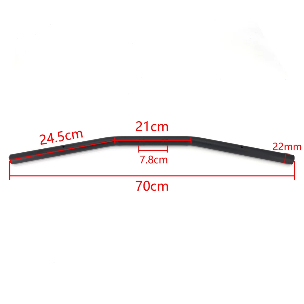 FeatureModified handlebar enhances rider's comfortability as well as the look of the bike.Simple design, fashionable and durable.Direct installation, no modification required.DescriptionItem name: Retro Motorcycle 22mm HandlebarsMaterial: MetalColor: Black/ChromeDiameter: 22mmCompatibility: Please check the measurements before purchasePackage includes1 piece of Motorcycle HandlebarNoticePlease allow 1-3mm error due to manual measurement, thanks.No instructions included. Professional installation is highly recommended.Due to changes in the brightness of the light, the color of the product may be a bit different from the actual color. Please refer to the actual product, thanks.About shippingItems will be shipped within 1-3 business days when we received payment.Support & FeedbackPositive Feedback is very important for us. Please don't forget to give us all ★★★★★ ratings if you are satisfied with our product and service :)