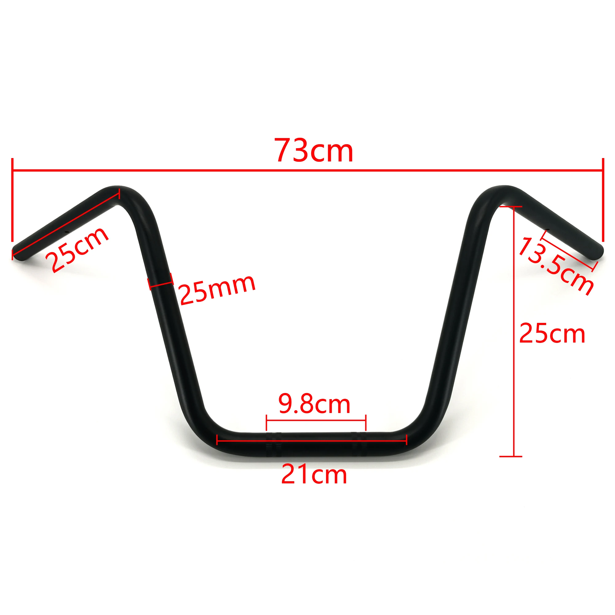 Vintage Motorbike Handlebar 25mm 1'' Super High Classic Steering Wheel for Bobber Chopper Cruiser Scooter Sportster Handle BarsFeatureModified handlebar enhances rider's comfortability for driving.Sufficient hardness ensures safety, high-quality metal material makes it more durable.Simple design, giving your motorcycle a great new look.Direct installation, no modification required.DescriptionItem name: Retro Motorcycle Handlebar 25mmMaterial: MetalColor: Black/ChromeDiameter: 25mm (1'')Length: 730mmCompatibility: Fits for most motorcycles, please check the measurements before purchase.Package includesOne piece of motorcycle handlebarNoticePlease allow 1-3mm error due to manual measurement, thanks.No instructions included. Professional installation is highly recommended.Due to changes in the brightness of the light, the color of the product may be a bit different from the actual color. Please refer to the actual product, thanks.About shippingItems will be shipped within 1-3 business days when we received payment.Import duties, taxes are not included in the item price or shipping charges. These charges are buyer's responsibility.Support & FeedbackPositive Feedback is very important for us. Please don't forget to give us all ★★★★★ ratings if you are satisfied with our product and service :)Don't hesitate to contact us if any question, we will reply in 12 hours. Please don't open dispute or leave negative feedback easily, trust us and contact us directly, all the issues would be solved :)